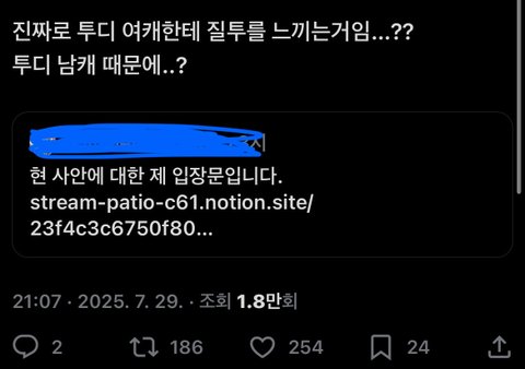 나 투디 최애 2년 넘게좋아하고잇는데 진지하게 최애랑 딴 여캐 관계성? 접촉? 이런거 있으면 너무_같고 정병오는데 딴사람들은 안이래? ㅅㅂ 이거보고 개충격받음 최애가너무좋아서 투디여캐 솔직히 질투해본적이 한두번이아닌데 신발…