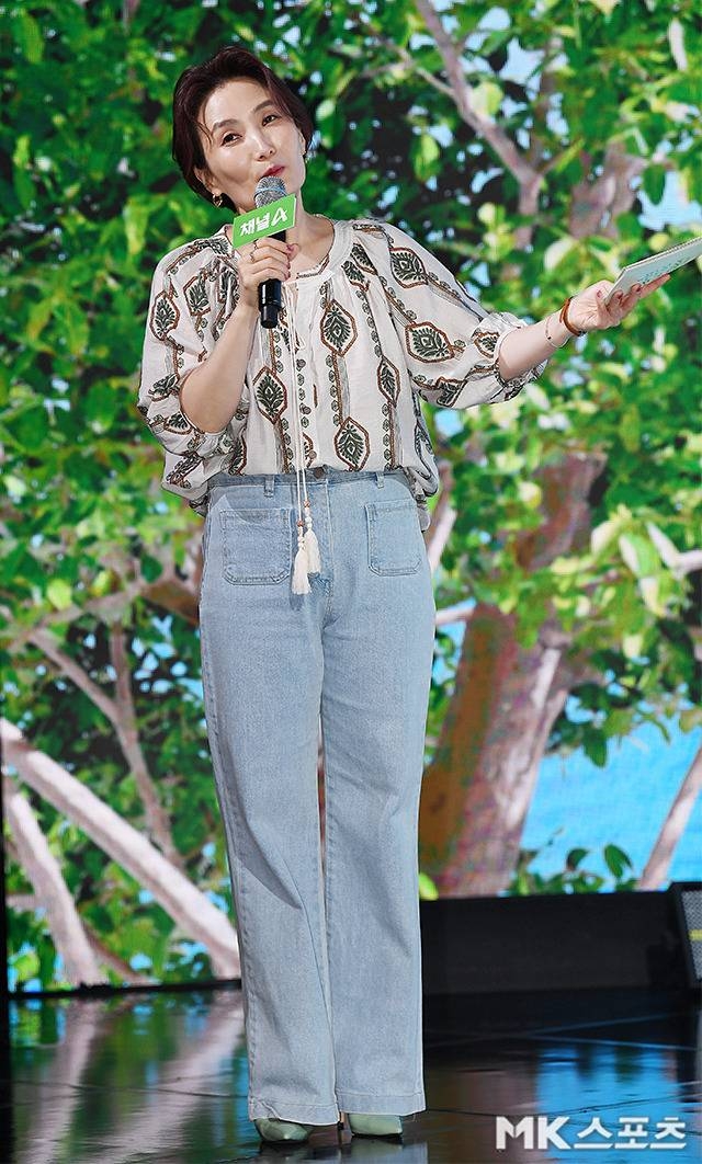 박경림이 센스 있는 캐주얼룩으로 제작발표회장을 환하게 밝혔다.사진=천정환 기자
