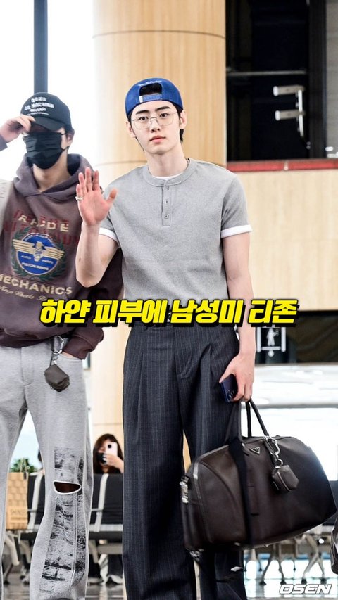 엔하이픈 성훈이 출국길에 포즈를 취하고 있다. /cej@osen.co.kr