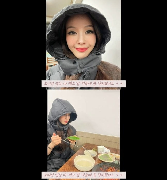 사진=방민아 유튜브 캡처방민아는 "오디션 영상을 다 찍고 밥 먹을 때 조금 창피했다"라며 식사하는 모습도 공개했다. 이어 그는 "비록 오디션은 떨어졌지만, 이 인물들을 사랑했던 그 순간들은 너무나 소중했다. 다음 오디션 영상도 기대해 달라"고 웃어 보였다.
