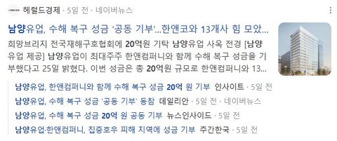 남양유업, 한앤컴퍼니와 함께 수해 복구 성금 20억 원 기부