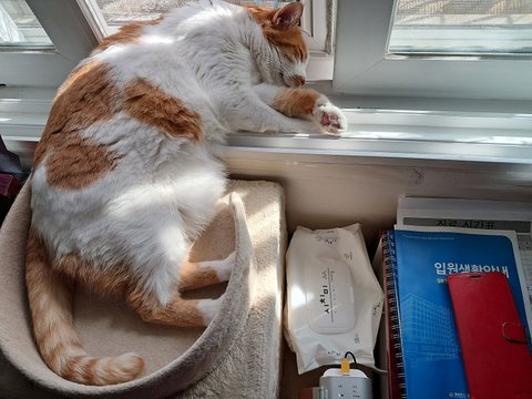 창문틀에 누워서 창밖 보기도 하고,,