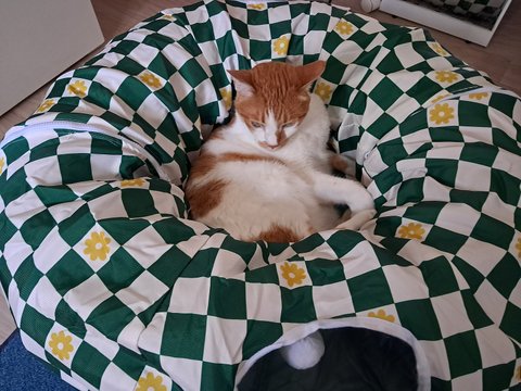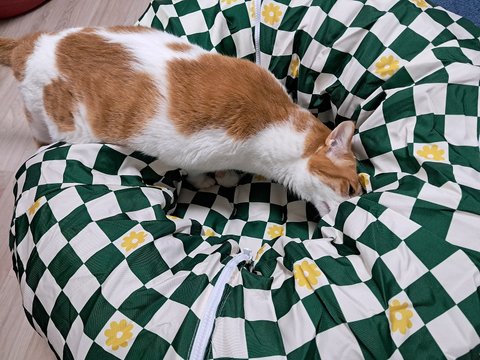 집사가 수면바지 사이즈를 잘못사서 도칠이에게 줬는데 엄청 좋아함.