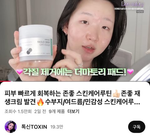 요새 잘 보고 있는 여드름 피부 유튜버이신 톡신님이