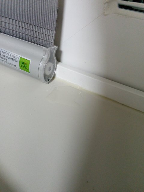 하룻밤 새에 블라인드가 물 타고 젖어 흔적이 크게 남았습니다.