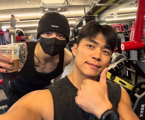 마선호가 정국과 헬스장에서 인증숏을 찍고 있다. / 마선호 소셜미디어