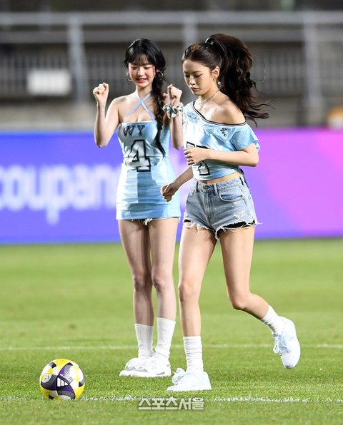 오늘 쿠팡플레이에서 시축했는데 안유진 장원영 둘다 진짜 ㄹㅈㄷ로 예쁨 예쁜것도 예쁜건데 둘 다 비율 진짜 미쳤어 기사사진인데 어뜨케 저런 비율이 나올수 있는거임? 안녕즈 넘 예쁘다