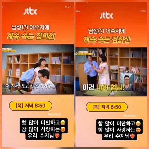 김희선은 29일 자신의 SNS 스토리에 “참 많이 미안하고 참 많이 사랑하는 우리 수지님”이라는 글과 함께 한 영상을 업로드했다. 해당 영상은 최근 방송된 JTBC ‘한끼합쇼’의 한 장면을 담고 있다.