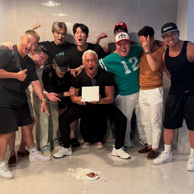 추성훈이 생일파티 비하인드 사진을 공개했다. / 추성훈 인스타그램 캡처공개된 사진 속 추성훈은 생일 케이크를 들고 환하게 웃고 있고 그의 뒤로는 장근석, 박태환, 김재중, 임시완, 용감한 형제가 함께 포즈를 취하고 있다. 다 함께 촬영하던 중 케이크가 떨어지며 추성훈이 절규하는 장면까지 담겨 유쾌한 분위기를 더했다.