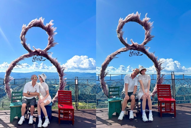 공개된 사진 속 최여진은 김재욱과 함께 아름다운 풍경 앞에서 다정한 어깨동무로 커플 사진을 찍어 눈길을 끈다.