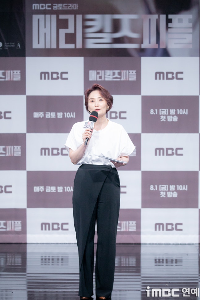 MC 박경림이 31일 오전 서울 상암 MBC 신사옥 골든마우스홀에서 열린 MBC 새 금토드라마 ‘메리 킬즈 피플’ 제작발표회에 참석해 진행을 하고 있다.