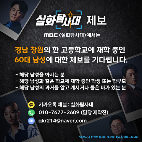 MBC <실화탐사대>에서는 경남 창원의 한 고등학교에 재학 중인 60대 남성에 대한 제보를 기다립니다.
