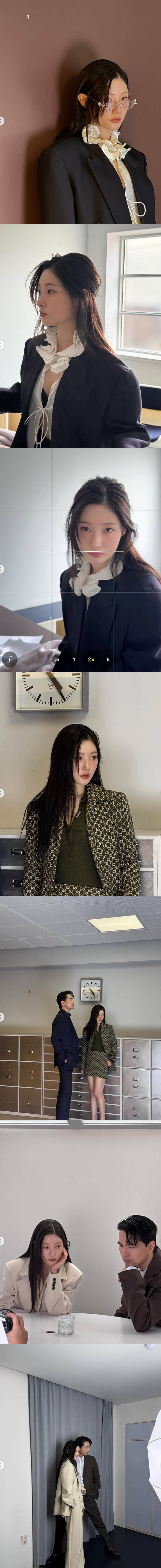 이진욱 역시 특유의 카리스마와 함께 댄디한 수트룩을 선보이며, 정채연과 함께한 투샷에서는 모델 못지않은 존재감을 드러냈다. 두 사람은 나란히 서 있거나 책상에 기대어 있는 포즈로 자연스러우면서도 강렬한 케미스트리를 완성했다.