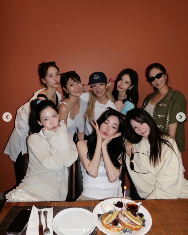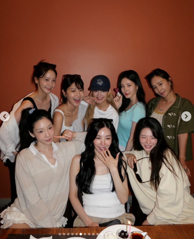 태연, 유리, 수영, 윤아, 효연, 서현은 물론, SM을 떠나 미국으로 활동 무대를 옮긴 써니까지 함께해 눈길을 끌었다. 이들은 생일 축하 노래를 부르고, 케이크 초를 불며 기쁨을 나누는 등 따뜻한 시간을 함께 보냈다.