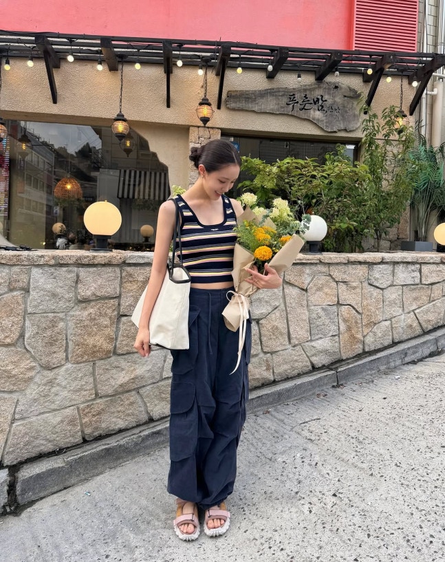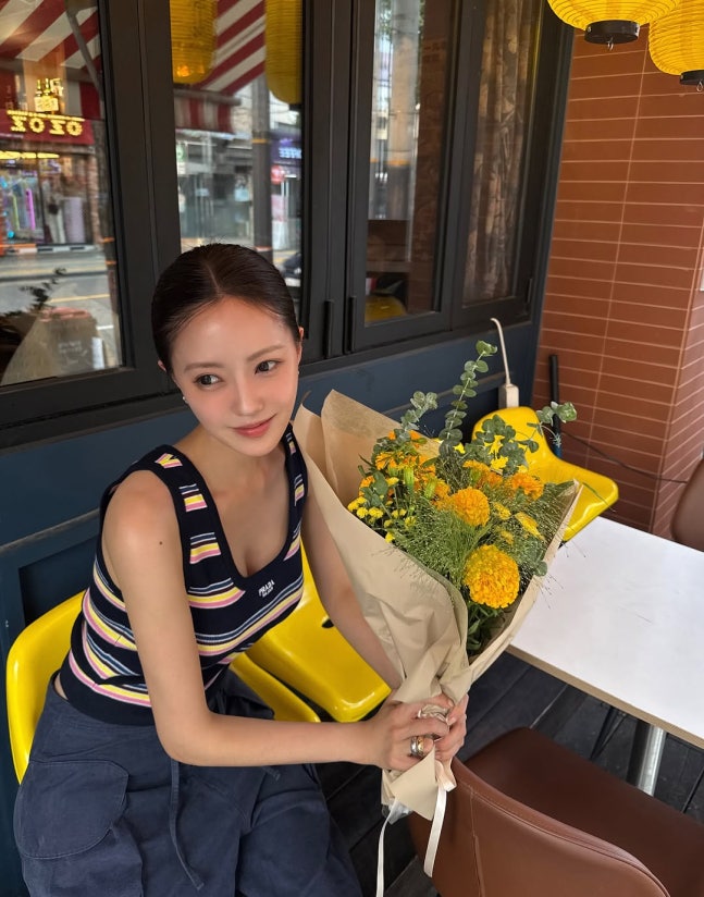 공개된 사진 속 효민은 화사한 꽃다발을 들고 거리를 거닐며 여유로운 하루를 보내는 모습이다.