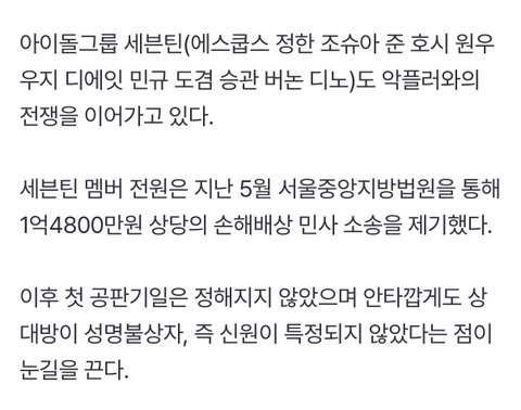 세븐틴 멤버당 1억4800만원 민사소송 한다고 함ㅋㅋㅋ