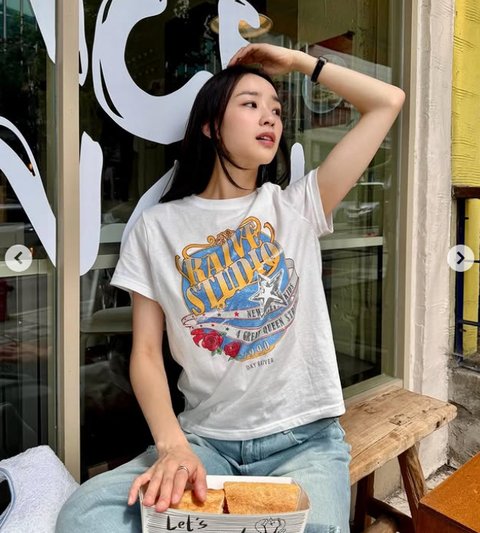 사진 속 손연재는 티셔츠에 청바지를 입고 깔끔한 룩을 완성했다. 손연재는 여리여리한 몸매로 시선을 사로잡는다.
