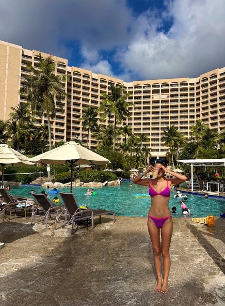 공개된 사진 속 김빈우는 괌에 위치한 한 리조트에서 비키니를 입고 포즈를 취하고 있는 모습이다.