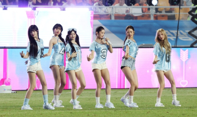 아이브(사진=뉴스1)아이브는 지난달 30일 수원월드컵경기장에서 열린 ‘2025 쿠팡플레이 시리즈’ 팀 K리그 대 뉴캐슬 유나이티드 경기에 시축자이자 축하 공연 가수로 참여했다.이날 아이브 멤버들은 광택 소재 하늘색 상의에 핫팬츠를 매치한 의상으로 맞춰 입고 모습을 드러냈다. 멤버별로 상의 디자인을 다르게 리폼해 개성을 드러낸 점이 돋보였다.