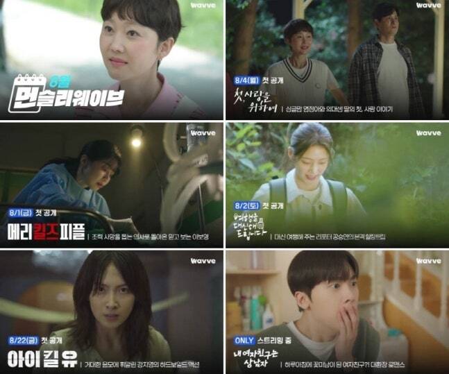 8월 먼슬리 웨이브 영상 캡처. 웨이브 제공◆‘첫, 사랑을 위하여’→‘아이 킬 유’ 출격웨이브에서 tvN 드라마가 최초로 동시 공개된다. 염정아, 박해준 주연의 ‘첫, 사랑을 위하여’는 예상치 못하게 인생 2막을 맞이한 싱글맘과 의대생 딸이 내일이 아닌 오늘의 행복을 살기로 하면서 마주하는 끝이 아닌 첫, 사랑의 이야기를 그린다. 엄마친구아들, 일타 스캔들, 갯마을 차차차를 연출한 유제원 감독과 탄탄하고 참신한 필력의 성우진 작가가 의기투합해 어른들의 순수한 로맨스와 따뜻한 가족애를 선사할 예정이다.