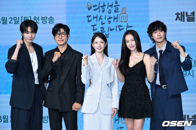 [OSEN=조은정 기자]29일 오후 서울 상암동 쇼킹케이팝센터에서 채널A 새 토일드라마 ‘여행을 대신해 드립니다’ 제작발표회가 열렸다.이날 행사에는 배우 공승연, 유준상, 김재영, 홍수현, 오현중, 강솔 감독이 참석했다.배우 김재영, 유준상, 공승연, 강솔 감독, 홍수현, 오현중이 포즈를 취하고 있다. 2025.07.29 /cej@osen.co.kr또 원작과의 차이에 대해서는 "각 지역 에피소드는 작가님이 새롭게 구성했다. 일본소설에서 틀을 가져왔지만 안에서 전개되는 이야기, 감정 흐름은 충분히 우리 이야기"라고 강조했다.