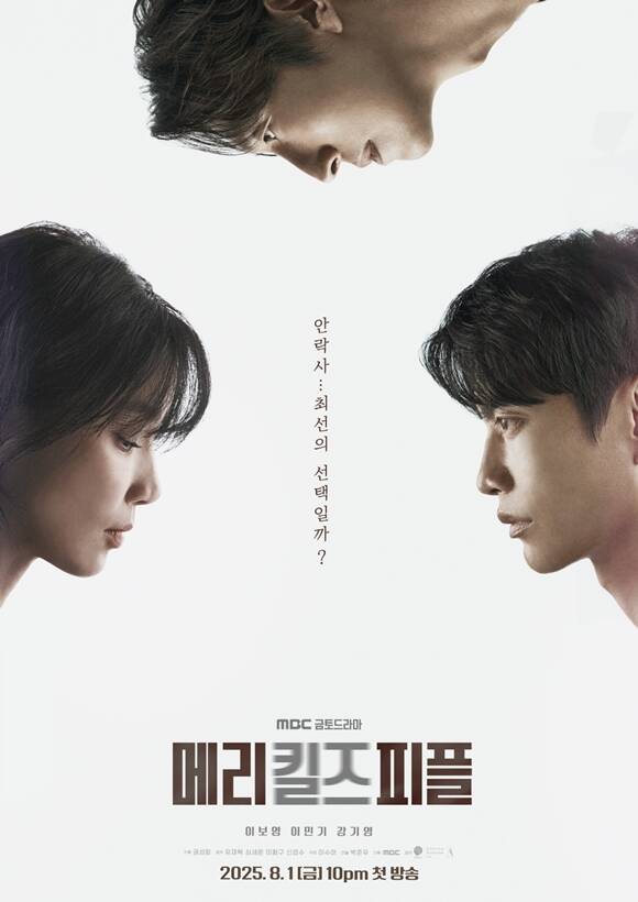 MBC 새 금토드라마 '메리 킬즈 피플'은 치료 불가능한 환자들의 조력 사망을 돕는 의사와 이들을 추적하는 형사의 이야기를 다룬 서스펜스 드라마다. 삶과 죽음이라는 근원적인 질문을 던지는 이 작품은 치료가 불가능한 말기 환자들의 마지막 선택을 둘러싼 윤리적 딜레마와 인간 감정의 경계를 섬세하게 그려낼 예정이다.