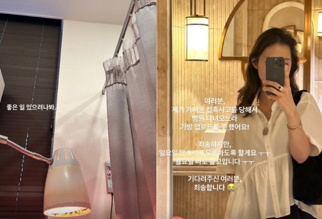 공개된 사진에는 병원서 치료 중인 이하정이 담겼다. 그는 "여러분 제가 가벼운 접촉 사고를 당해서 병원 다녀오느라 업로드를 못 했어요. 기다려주신 여러분 죄송합니다"라고 알렸다.