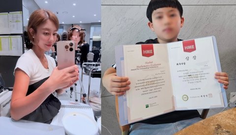 공개된 사진 속에는 아들이 최우수상 상장을 들고 있는 모습이 담겼다. 4학년인 이지현의 아들은 더 고학년인 5학년 사이에서도 수학 학력평가 최우수상을 거머쥐어 눈길을 끌었다.