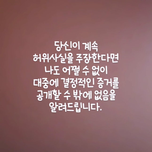 서유리는 이와 함께 "당신이 계속 허위사실을 주장한다면 나도 어쩔 수 없이 대중에 결정적인 증거를 공개할 수밖에 없음을 알려드린다"고 경고했다. 또한 "사귀자 마자 3500만원 빌려달라 했을때 그만둬야 했다. 조상신께서 주시는 신호였을텐데..."라며 연애 초기부터 자신에게 돈을 빌려갔다고 주장하는 글을 게재하기도 했다.