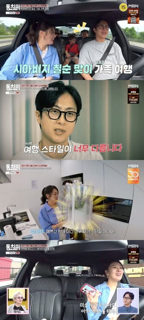 전민기는 신혼 초, 여유롭지 않은 경제 상황 때문에 부모님의 여행에 자주 따라다녔다며 이번 여행만큼은 자신이 모두 경비를 지출할 것이라고 밝혔다. 훈훈한 분위기가 이어지는 가운데, 정미녀는 드라이브곡으로 ‘레베카’를 골라 모두를 당황스럽게 만들었다.