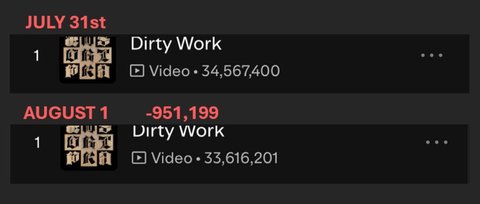 마지막 신곡 ‘Dirty Work’ 하루 만에 거의 백만 스트리밍 증발했는데,