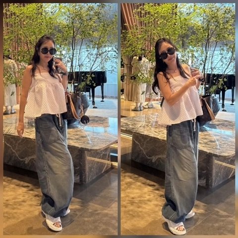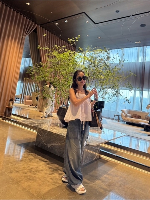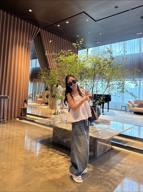 사진 속 박준금은 민소매 화이트 블라우스에 와이드 데님을 매치하고, 크록스를 신은 채 루이비통 토트백을 든 ‘쿨&리치’ 스타일을 완성했다. 여기에 제니 스타일의 블랙 선글라스와 올백 포니테일, 그리고 살짝 허리를 튕기며 추는 짧은 댄스는 보는 이들로 하여금 감탄을 자아내게 했다.