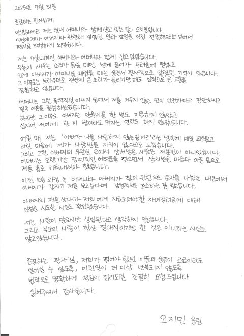 해당 글은 딸 아이가 판사님께 쓴 글입니다.널리널리 알려질수 있도록 고통받고 있는 한부모 가정들이 더 큰소리를 낼수 있도록여러분들의 힘이 필요합니다 .