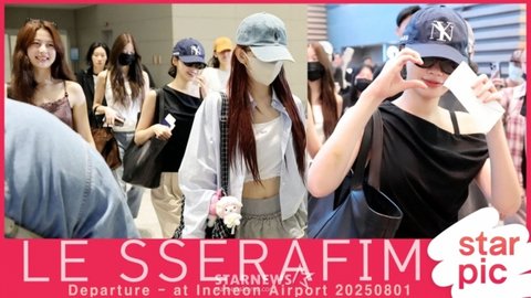 그룹 르세라핌(LE SSERAFIM) 허윤진, 카즈하, 사쿠라, 홍은채, 김채원이 필리핀 '2025 LE SSERAFIM TOUR 'EASY CRAZY HOT' IN ASIA' 공연 차 1일 오후 인천국제공항을 통해 출국하고 있다. 2025.08.01
