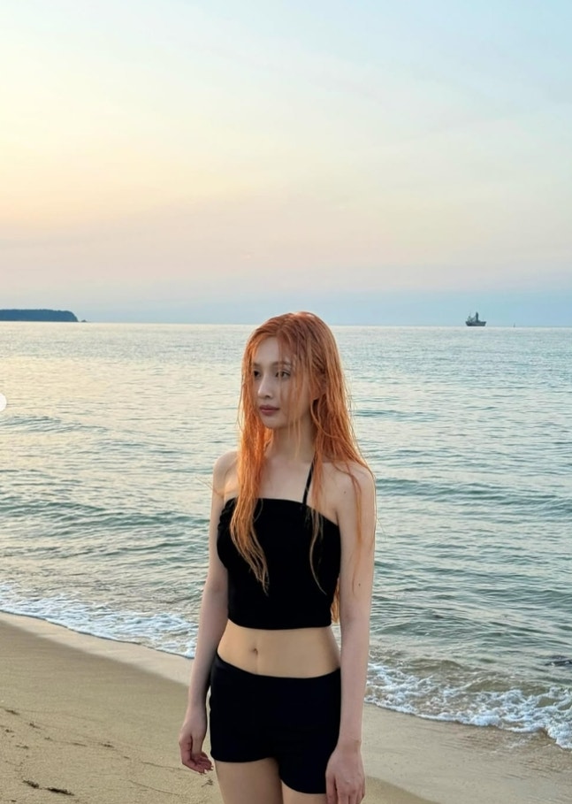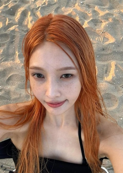 조이 소셜미디어공개된 사진에는 해변에서 촬영에 임하고 있는 조이의 모습이 담겨있다. 오렌지빛 헤어 컬러와 주근깨 가득한 메이크업이 시선을 사로잡는다.