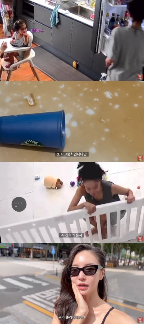 계속해서 김윤지는 펜스에 부딪히고 딸을 재우고 나오다 머리를 또 다시 부딪히는 등 우당탕 육아를 이어가 공감을 샀다.