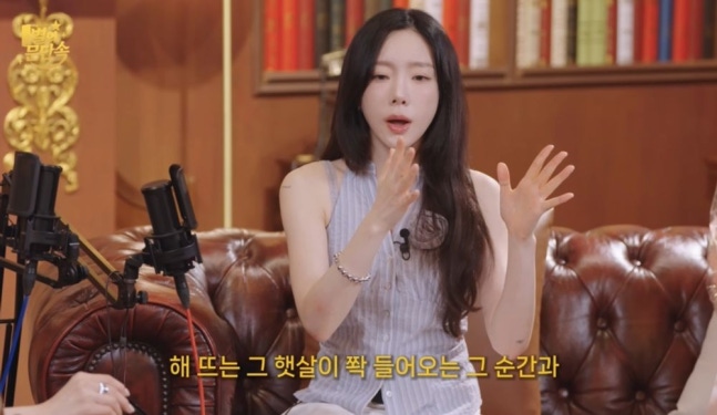 문별이 "일찍 자면 좋은 점이 뭐냐"고 궁금해하자 태연은 "해 뜨는 걸 볼 수 있다"고 말했다. 문별이 이해하지 못하자 태연은 "일출을 볼 수 있는데, 내가 제일 좋아하는 시간대다. 내 힐링 포인트"라면서 "해가 뜨면서 그 햇살이 들어오는 순간과 해가 지는 그 순간, 그땐 꼭 멍을 때린다"라며 자신이 좋아하는 시간이라고 설명했다.