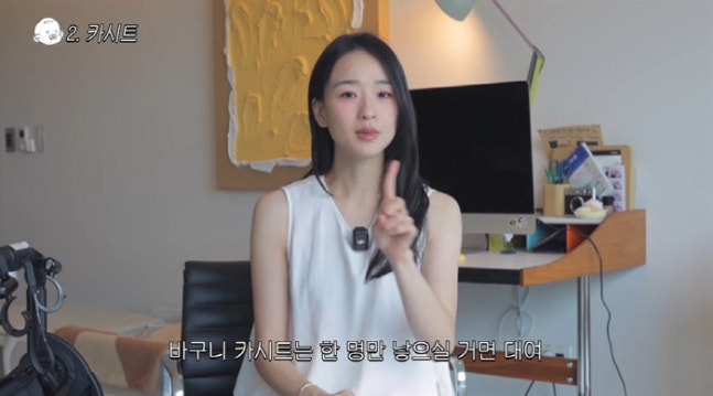 이어 육아템으로 카시트를 소개하며 "카시트를 2개 샀다. 신생아 때 집에 올때나 차에 탈 때 조리원에 갈 때 바구니 카시트가 필요하다"고 했다.
