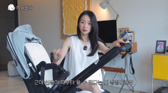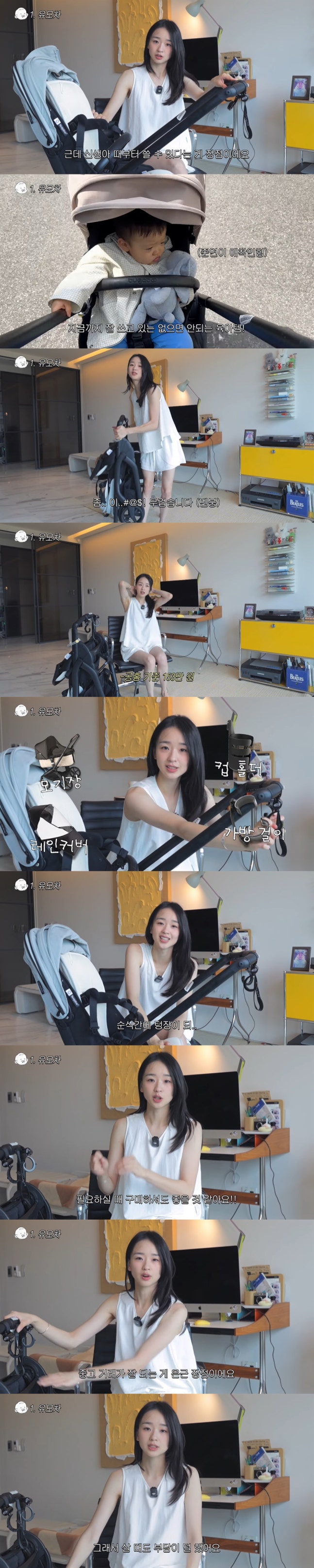 영상 속 손연재는 먼저 자신이 사용 중인 유모차를 소개, "첫 유모차는 실패하고 절충형으로 구매했다. 데일리로 사용하기엔 조금 무겁지만 신생아 때부터 쓸 수 있다는 게 장점이다"고 설명했다.