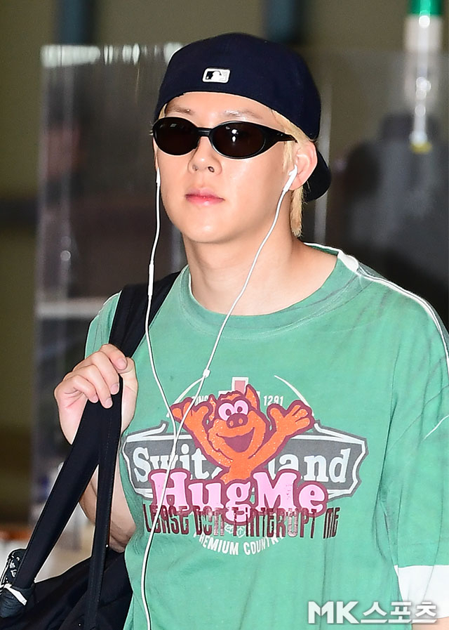 4일 오후, 미국 LA 일정을 마치고 인천국제공항을 통해 귀국한 몬스타엑스 멤버들 가운데 주헌은 단연 돋보이는 캐주얼룩으로 등장했다.