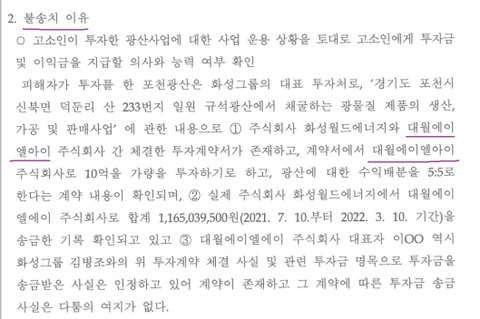 "피의자가 고소인에게 약속하였던 수익금을 일부 지급하지 못한 사실은 인정되나 이는 투자 이후 발생한 회사 사정으로 인한 경제사정 변화에 따라 지급하지 못한 것이고 실제 광산에 투자한 정황이 있다"가 무혐의, 불송치의 이유였습니다.