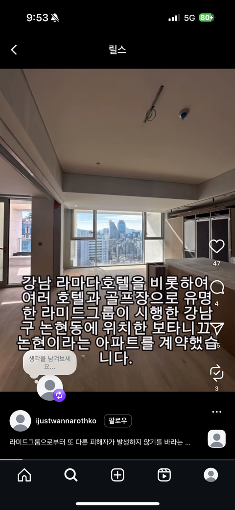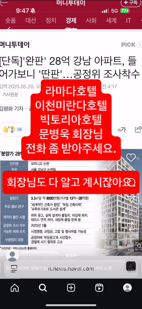 릴스 엄청 뜸.. 땅집고에도 나왔었나봐 저리 비싼 돈주고 집을 분양 받았는데 신발장에 신발이 안들어가고 여러문제가 있는데도 담당자 없고 계약자 연락 차단하고 차단했다고 당당하게 말하나 봄ㅋㅋㅋㅋㅋㅋㅋㅋㅋㅋ