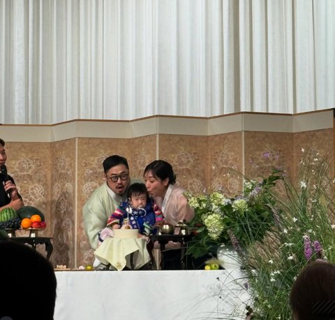특히 이은형과 강재준 부부의 유쾌한 입담과 사랑이 넘치는 모습은 이날 현장을 찾은 지인들과 팬들에게 큰 웃음을 안겼다. 무대 한쪽에는 과일과 떡, 전통 소품들이 정갈하게 차려져 있어 전통과 현대가 조화된 돌잔치 분위기를 완성했다.