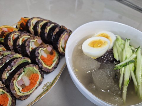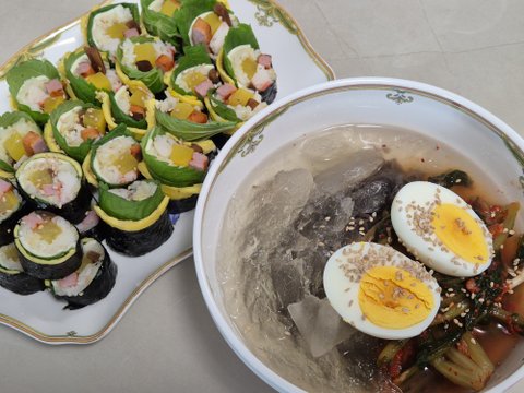 물냉면에 치즈김밥