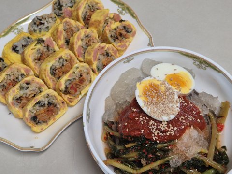 달걀말이밥에 반반냉면
