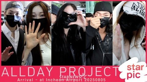 그룹 올데이프로젝트 (ALLDAY PROJECT) 애니, 타잔, 베일리, 영서, 우찬이 케이콘 LA 공연을 마치고 5일 오후 인천국제공항을 통해 입국하고 있다. 2025.08.05