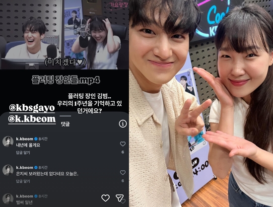 1년이 지난 지금까지도 두 사람의 케미가 꾸준히 회자되는 가운데 김범은 "벌써 일년"이라는 댓글을 남기고 추억했다. 또한 "은지씨 보러왔는데 없다네요. 오늘은"이라며 내심 실망하기도. 그는 "내년에 올게요"라고 덧붙였다.