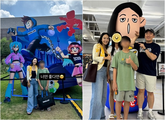 박지윤은 5일 자신의 계정에 "아니 어디서 정보는 물어오는지 로블록스팝업 사전예약 떴다길래 얼른 예약하고 아침 일찍 달려간 판교 현백"이라며 자녀들과의 데이트 사진을 올렸다.