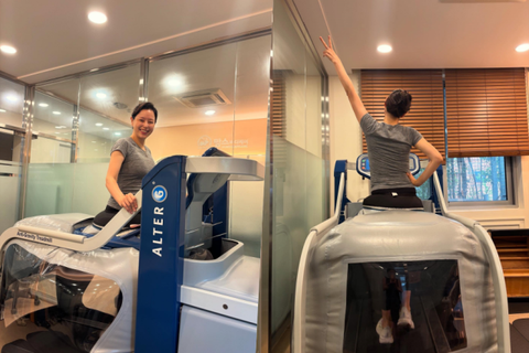 공개된 사진 속 이하늬는 무중력 러닝머신 위에서 밝은 미소를 지으며 포즈를 취하고 있다. 옆모습에서는 임신 막달의 D라인이 은은하게 드러나지만, 여전히 탄탄한 몸매와 안정된 자세가 눈길을 끈다.