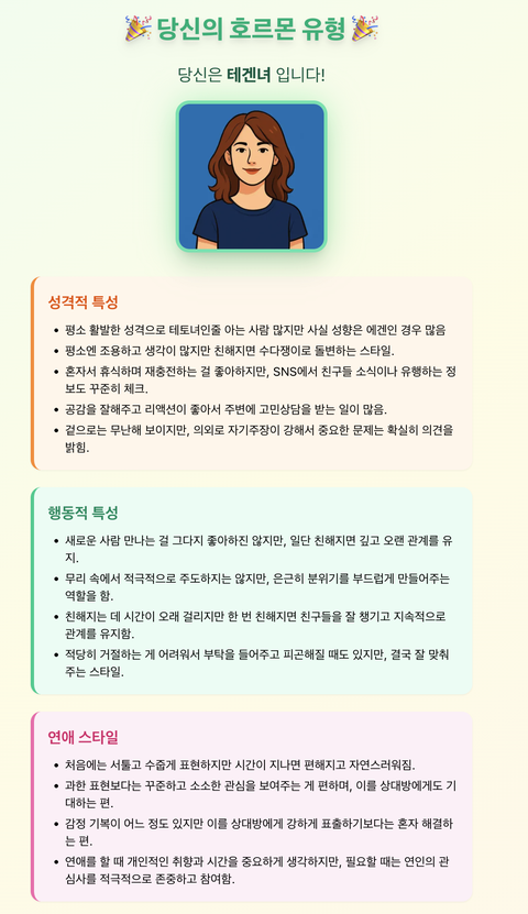 나는 에겐녀긴한데 약간의 테토 성향도 있다고 생각했는데 ㅎㅎㅎ 딱 중간 성향인 테겐녀도 있네 이건 ㅎㅎ 나름 비슷한듯